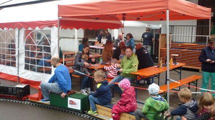 Der Verein traf an beiden Tagen auf sehr viel Interessierte. Natürlich waren Opa und Omas mit ihren Enkelkinder auch dabei. Die Kleinsten drehten mit der Kindereisenbahn auf dem Bahnhofsvorplatz Runde um Runde, und hatten auch an den ausgestellten Modellbahnen ihre Freude.